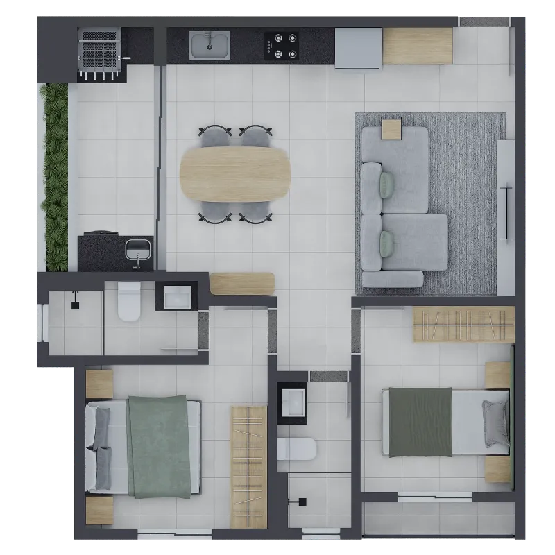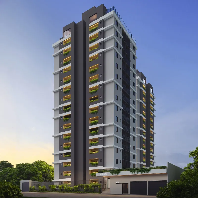 Informações do edifício: Localização: Rua Paris, 1458, Tibery, Uberlândia, MG Total de unidades: 128 Vagas de garagem: 162 Informações dos apartamentos: 2 Quartos com suíte Varanda com churrasqueira a carvão 61m² privativos Fachada verde com irrigação automática