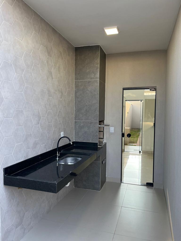 - 76 m² construção / 125 m² terreno- Térrea- 3/4; sendo 1 suíte espaçosa;- Área de serviço externa coberta;- Sala em dois ambientes com pé direito duplo de 4,5 metros, integrada com a cozinha;- Garagem espaçosa;- Fachada imponente e com pintura em lamato;- Porcelanatos de grandes formatos polido da delta e nas áreas molhadas o acetinado, com rodapés embutidos;- Bancadas e peitoris em granito são gabriel(preto);- Lavatórios em porcelanato escupido com nicho na suíte;- Luminotécnico pronto e moderno;- Portas em madeira;- Paisagismo e jardinagem prontos;- Itens de segurança(portao hdl reforçado no social, no de veículos trava automática nos portões automatizados, padrão de energia interno CM14 sem acesso pela rua, muros bem altos, concertina com perímetro externo do terreno)