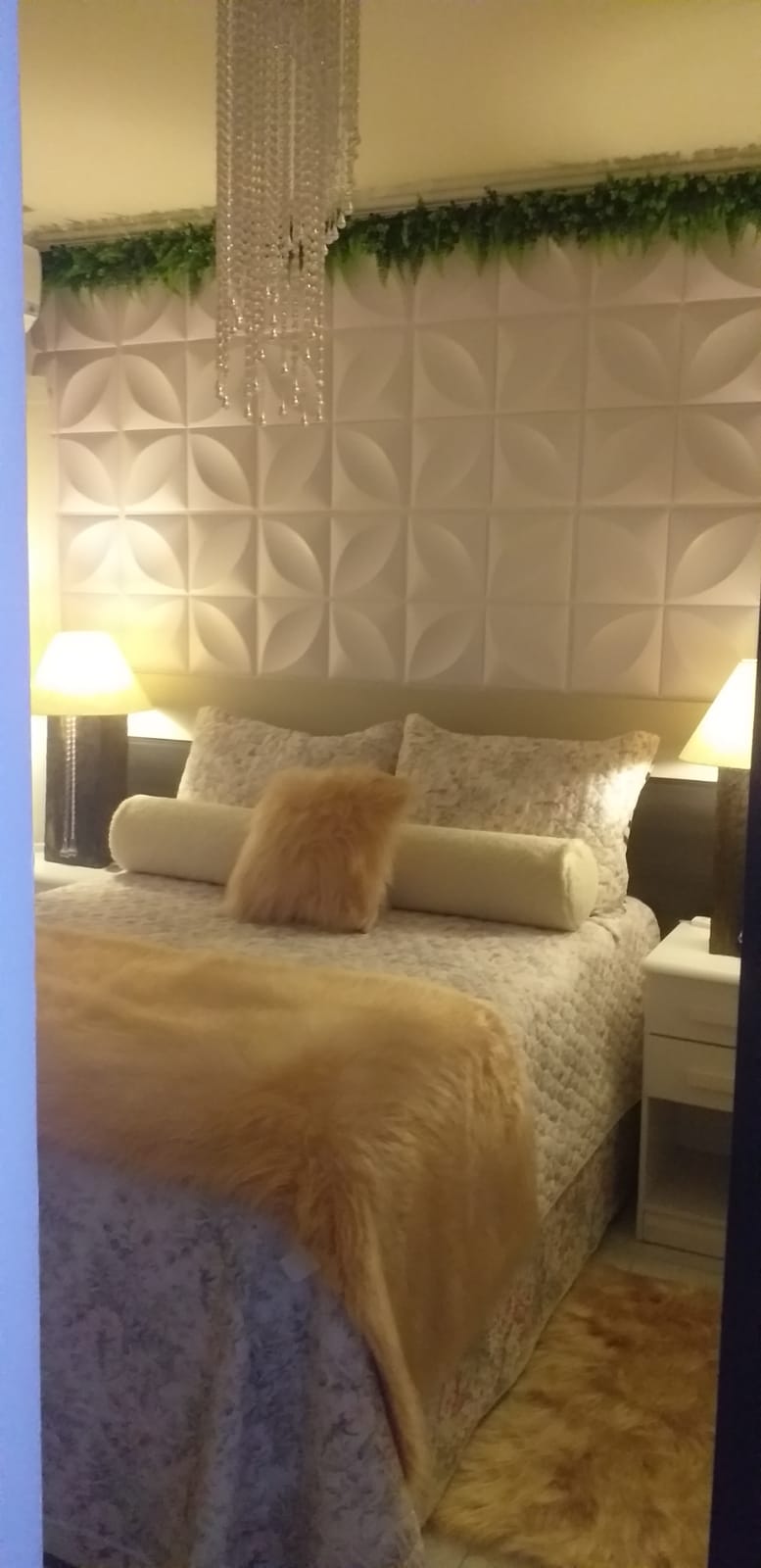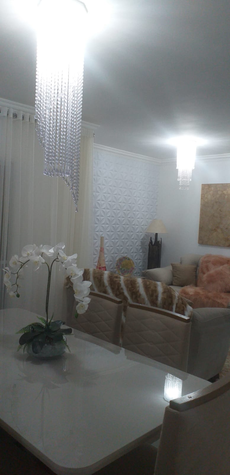 -3 quartos com guarda roupa planejado e ar condicionado -Sendo 1 suíte com sacada e guarda roupa planejado -Sala conjugada com acabamento em gesso -Cozinha c/ armário planejado, coifa-Sacada c/ churrasqueira c tampa e armario-Adega de parede-1 vaga na garagem coberta para 2 carrosDiferencial:10 lustres, jardim vertical da sala, 1 adega de parede na area gourmet, tampa na churrasqueira, uma coifa de parede na cozinha, 2 ar condicionado, todas as cortinas