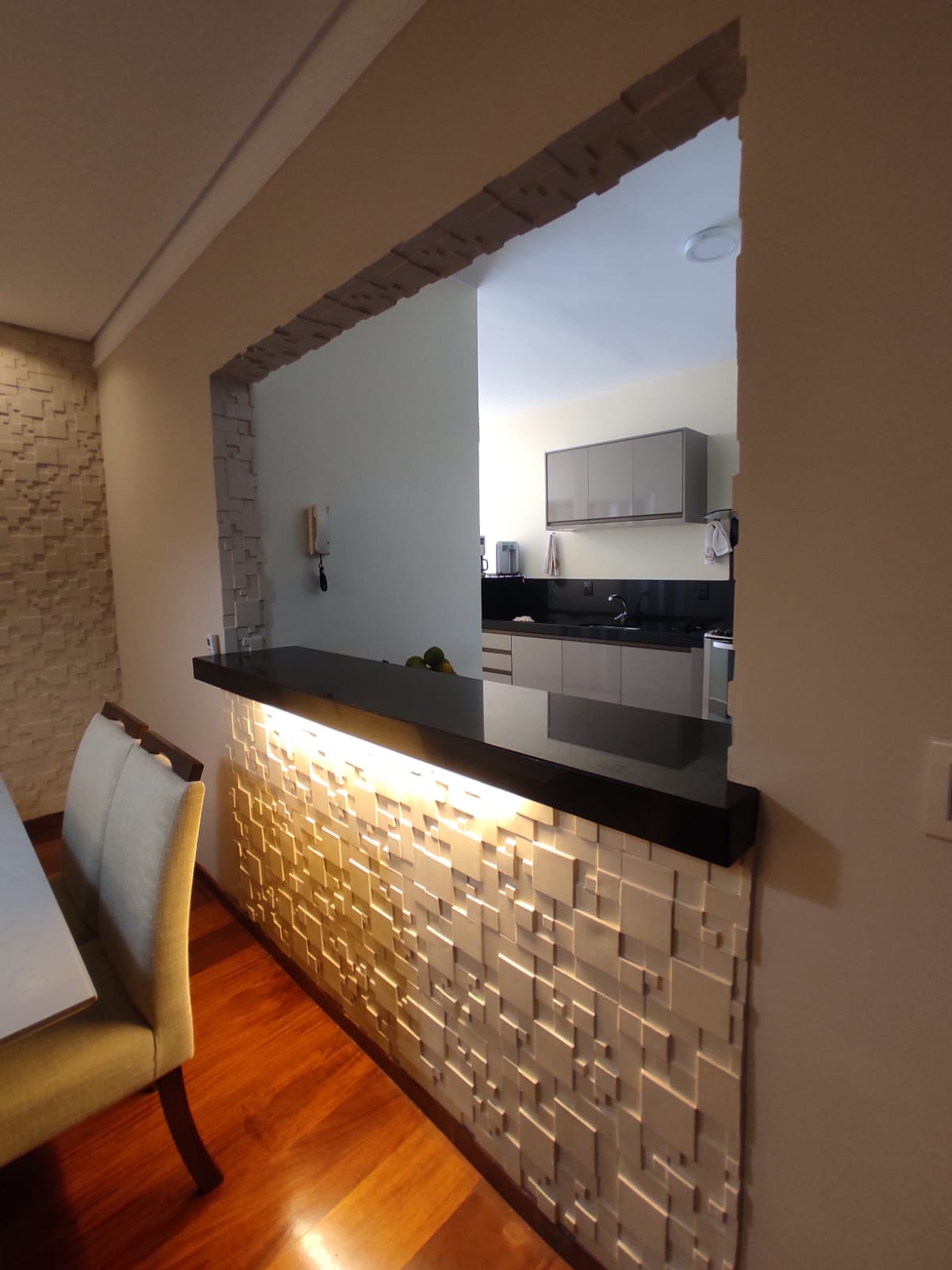 -3 Quartos-1 Suíte, painel modelo ripado acrílico.Banheiro com BOX blindex, espelho, Armários planejados.-1 Banheiro no quarto com pia em pedra importada com torneira 'Agua Quente e Fria'-1 Quarto com armário planejado ( Closet)-1 Quarto Workplace ( escritorio )também com armários embutidos.-1 Corredor para as áreas de acesso aos quartos e sala, com armários, de apoio e maleiros.-1 Banheiro social, também com BOX Blindex , espelho , armários planejados, Pia de pedra importada com torneira 'Água quente e fria'-Sala de TV Ampla e rotativa, sistema de iluminação Luminotech.-Ar Condicionado-Sala de Jantar Ampla-Integração Cozinha Ampla e Americana, com sala de jantar e cozinha, também com torneira 'Água Quente e Fria'-Balcão de apoio.-Área de Despensa (Guardar Mantimentos, produtos de limpeza e utensílios de cozinha e casa geral)-Área de Lavanderia.-2 Andar -01 Vaga de Garagem Coberta + 01 vaga de apoio Geral do Prédio.-Reformado e Remodelado em sistema High Tech!-Fica de Frente o Hotel Confort, Supermecados, Center Shopping, Açougues, Farmácia e etc.-Lugar estratégico de deslocamento para qualquer lugar de Uberlândia.-Ciclovia e pista de atividade na porta do prédio.-TORRE ÚNICA de 3 Andares.-12 Apartamentos.- NÃO POSSUI ELEVADOR-1 vaga na garagem coberta-1 vaga de apoio de uso geral-R$ 395 MIL - SEM Mobília-R$ 435 MIL - COM Mobília