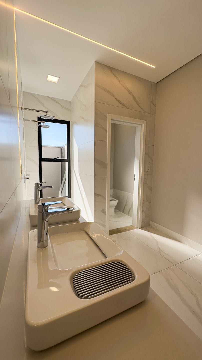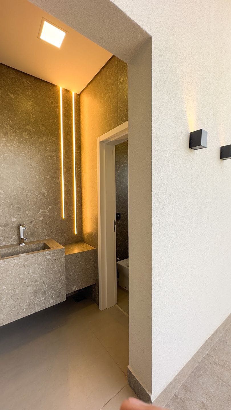Terreno 420 m²- Construção 252 m²- 3 suítes + 1 multiúso conversível em 4 suíte (Sala Cinema, Home Office, Etc..)- Sala ampla em vários ambientes integrada com- Fachada com 32M² de Madeira - Varanda gourmet- Lavanderia ampla- Dispensa- Lavabo- Banheira na área da piscina- Bancada e Balcão MÁRMORE VIA LÁCTEA- Todo revestimento interno da casa tamanho 90X90 (BIANCOGRES)- Porcelanato ext Pietra nicolau 90X90 (BIANCOGRES) piscinaValor R$ 2.570.100,00