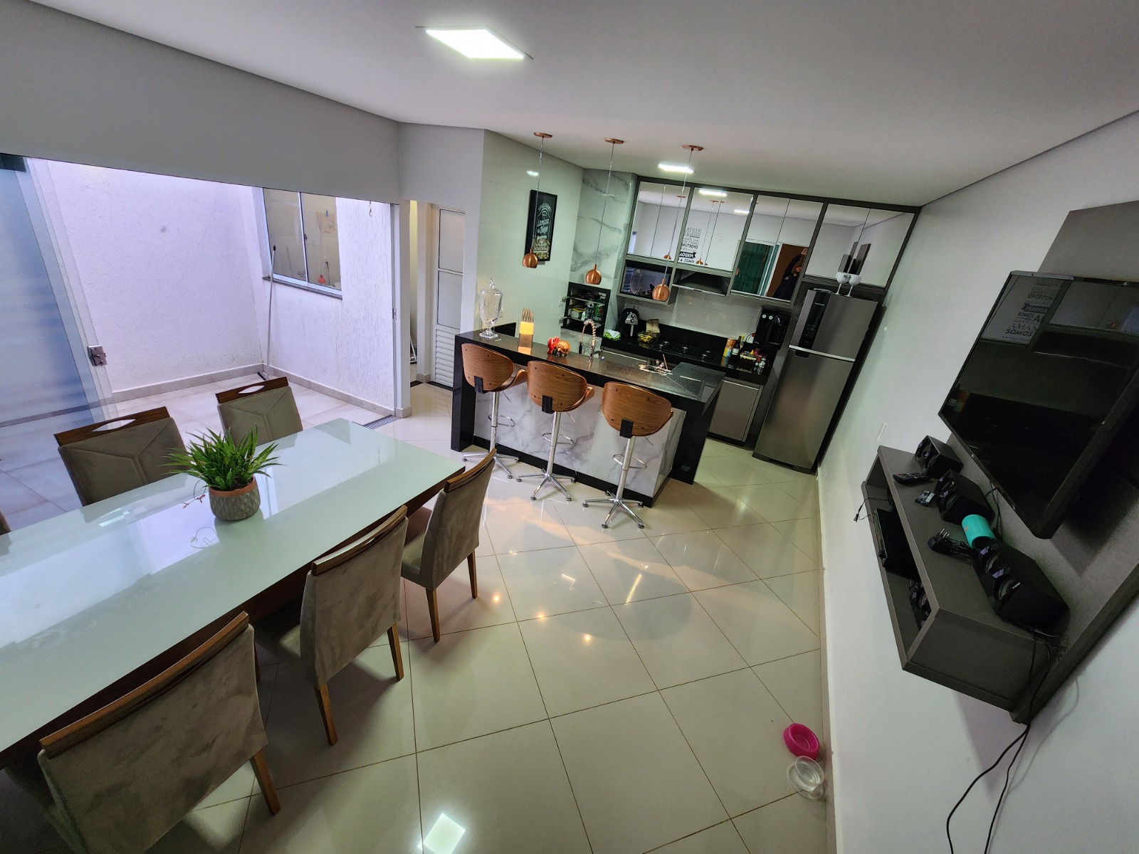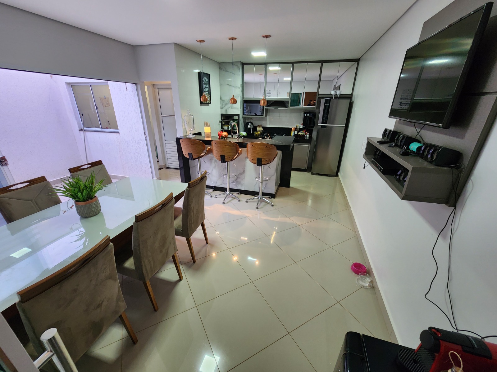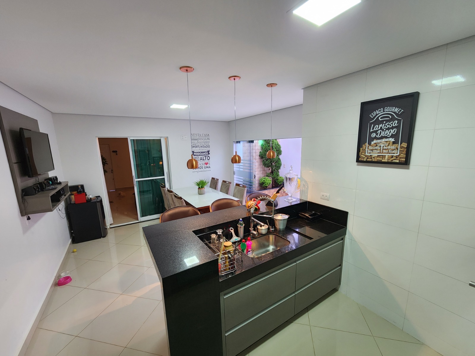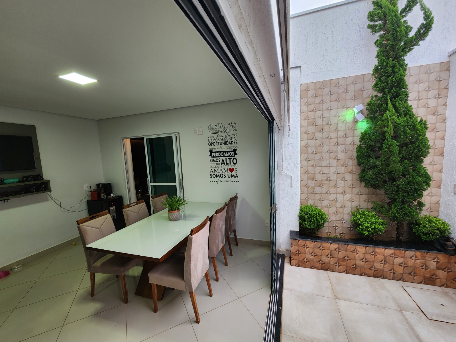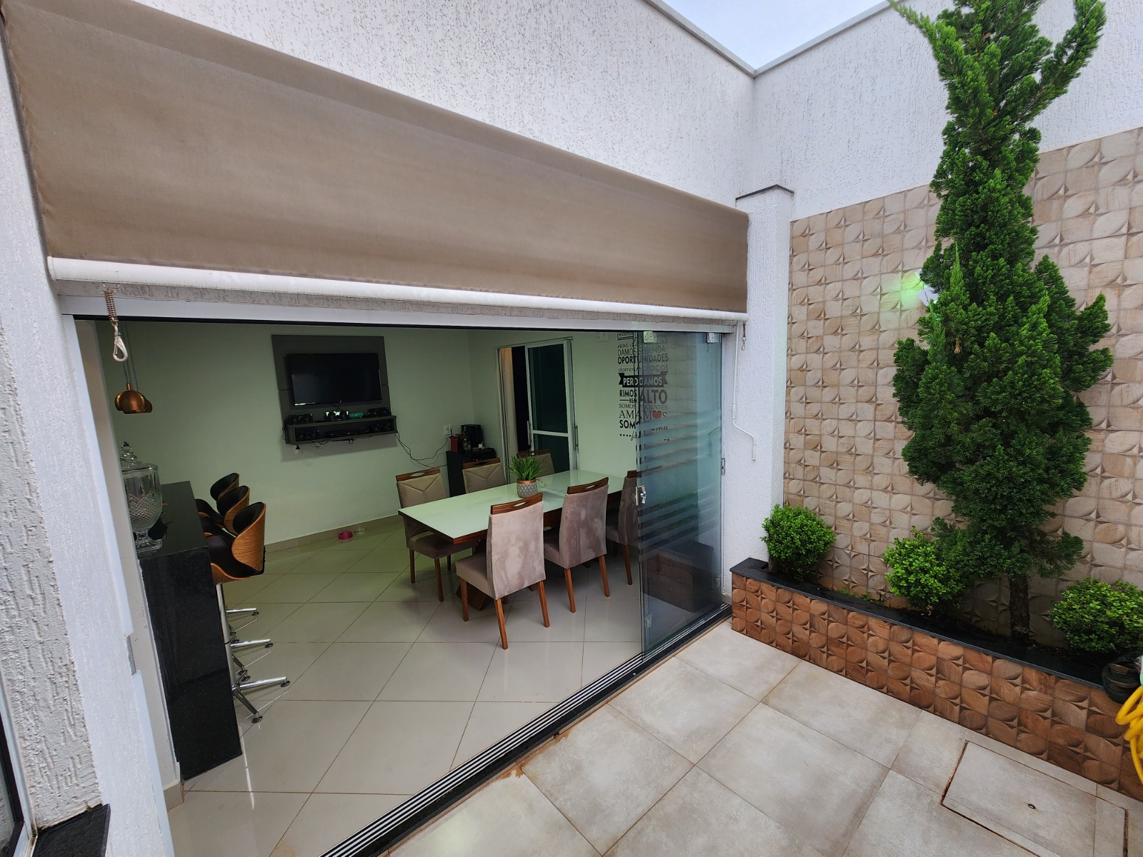 Casa top toda modificada, são 3/4 sendo 1 suíte, e 2 semi-suítes, porcelanato, cozinha/area gourmet com churrasqueira(conta com coifa de parede embutida, armários planejados, porta de blindex e lavabo)Sala de TV( conta com Ar condicionado 9.000BTUS e painel para TV planejado)Suíte do casal (conta com Ar condicionado 9.000BTUS, dois criados mudos embutidos, luminárias, guarda roupas embutido e penteadeira tipo camarim com espelho)Area de serviço(conta com armario embutido e pia)Todos banheiros já com armários e box.Todos os quartos com guarda roupas embutidos, closet no corredor.Garagem p/ dois carros coberta, ja com pisos entrecravados.Toldo retrátil no quintal.Casa com mais privacidade que as demais, pois nao tem frente de casa na porta e nem ao lado direito, são laterais de outras casas, proporcionando mais privacidade, cerca viva e jardim.