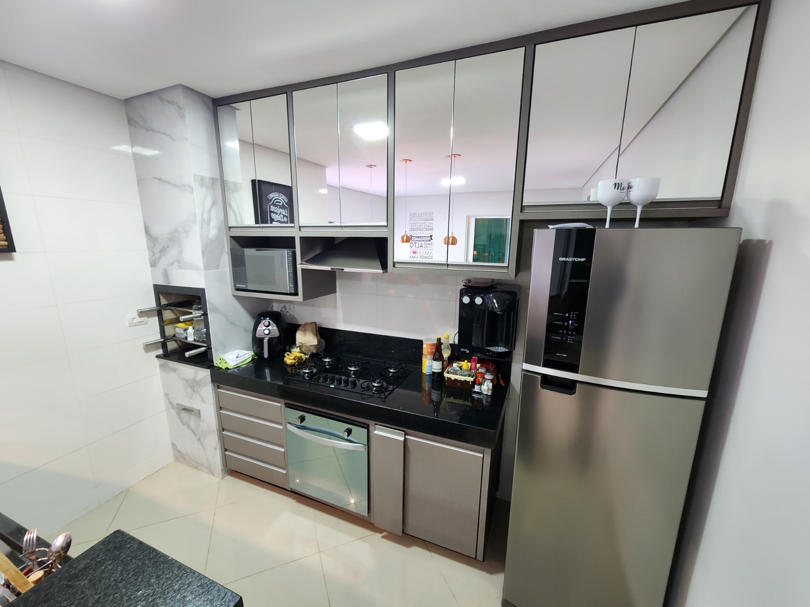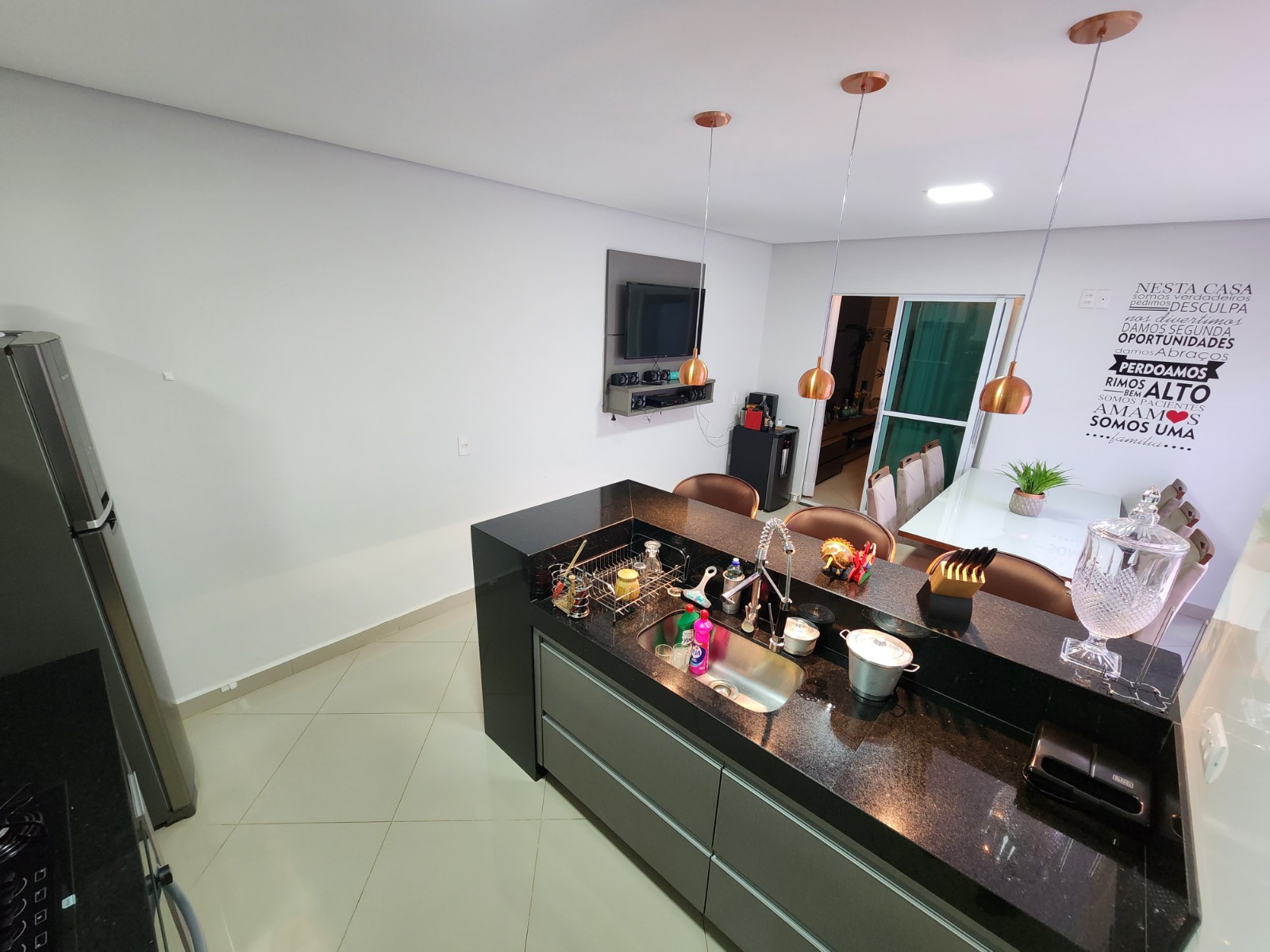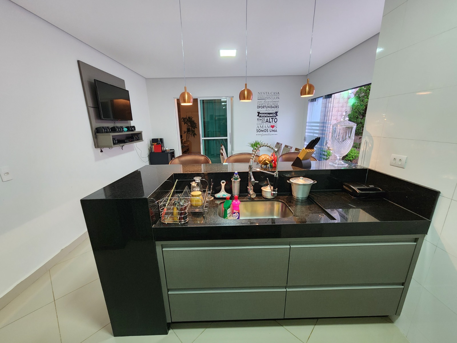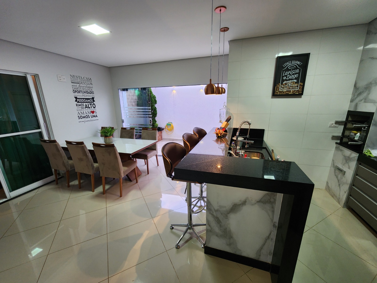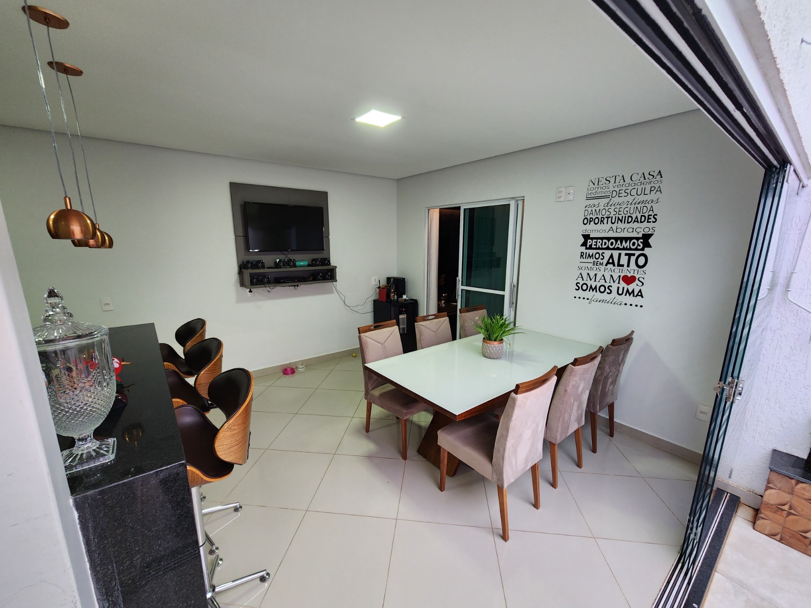 Casa top toda modificada, são 3/4 sendo 1 suíte, e 2 semi-suítes, porcelanato, cozinha/area gourmet com churrasqueira(conta com coifa de parede embutida, armários planejados, porta de blindex e lavabo)Sala de TV( conta com Ar condicionado 9.000BTUS e painel para TV planejado)Suíte do casal (conta com Ar condicionado 9.000BTUS, dois criados mudos embutidos, luminárias, guarda roupas embutido e penteadeira tipo camarim com espelho)Area de serviço(conta com armario embutido e pia)Todos banheiros já com armários e box.Todos os quartos com guarda roupas embutidos, closet no corredor.Garagem p/ dois carros coberta, ja com pisos entrecravados.Toldo retrátil no quintal.Casa com mais privacidade que as demais, pois nao tem frente de casa na porta e nem ao lado direito, são laterais de outras casas, proporcionando mais privacidade, cerca viva e jardim.