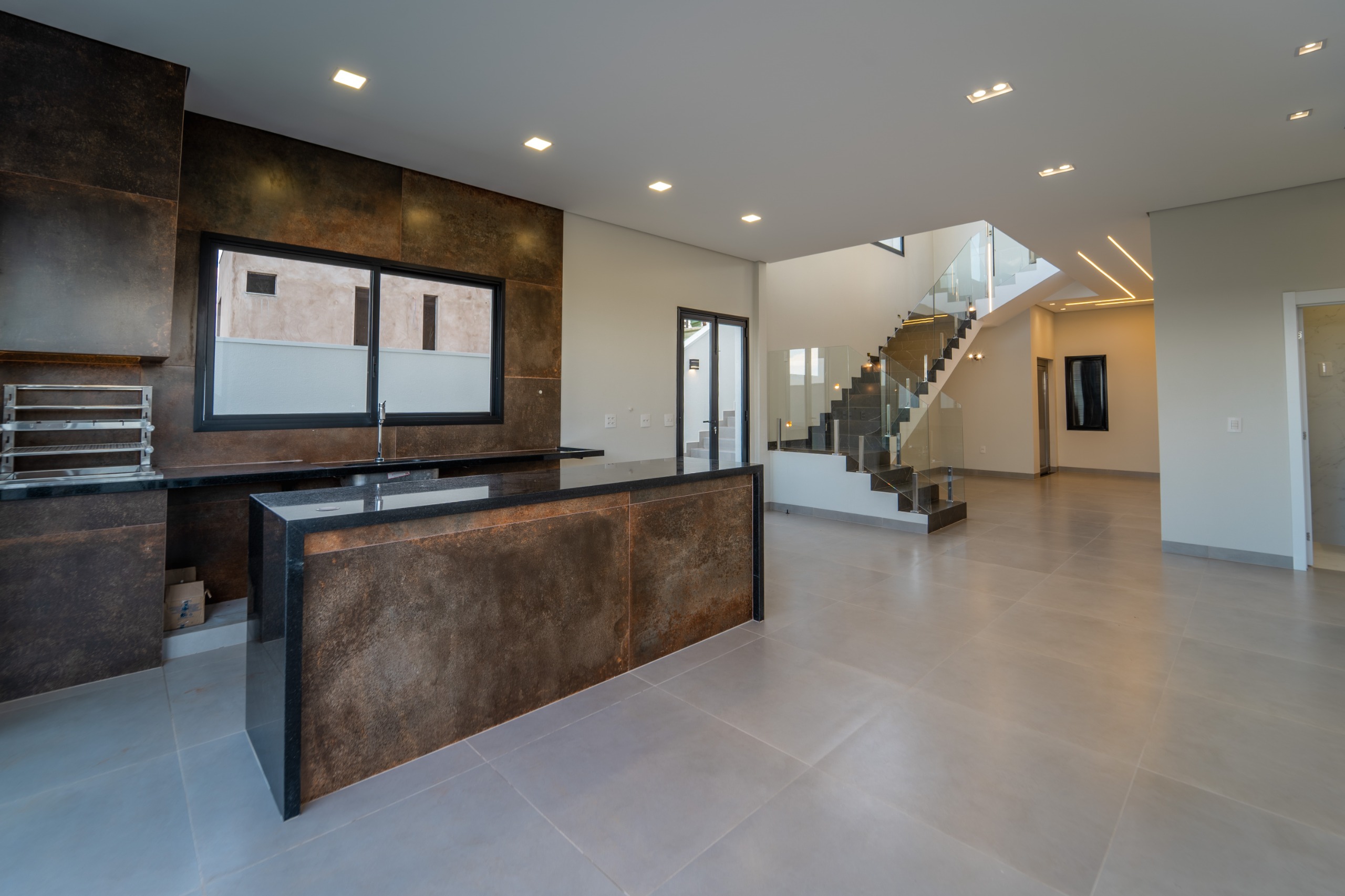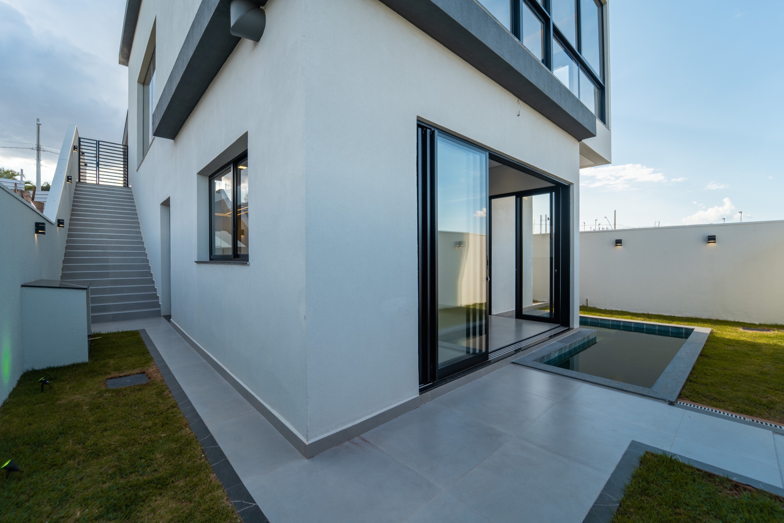 Sobrado com 222 m2 de área construída.?Quatro quartos sendo duas suítes?Janelas automatizadas?Sala de tv?Sala de estar?Cozinha com sala de jantar?Área gourmet integrada?Churrasqueira?Piscina?Hidromassagem?Pé direito duplo?Elevador?Lavanderia?Lavabo?Garagem para 5 carros sendo 3 cobertos