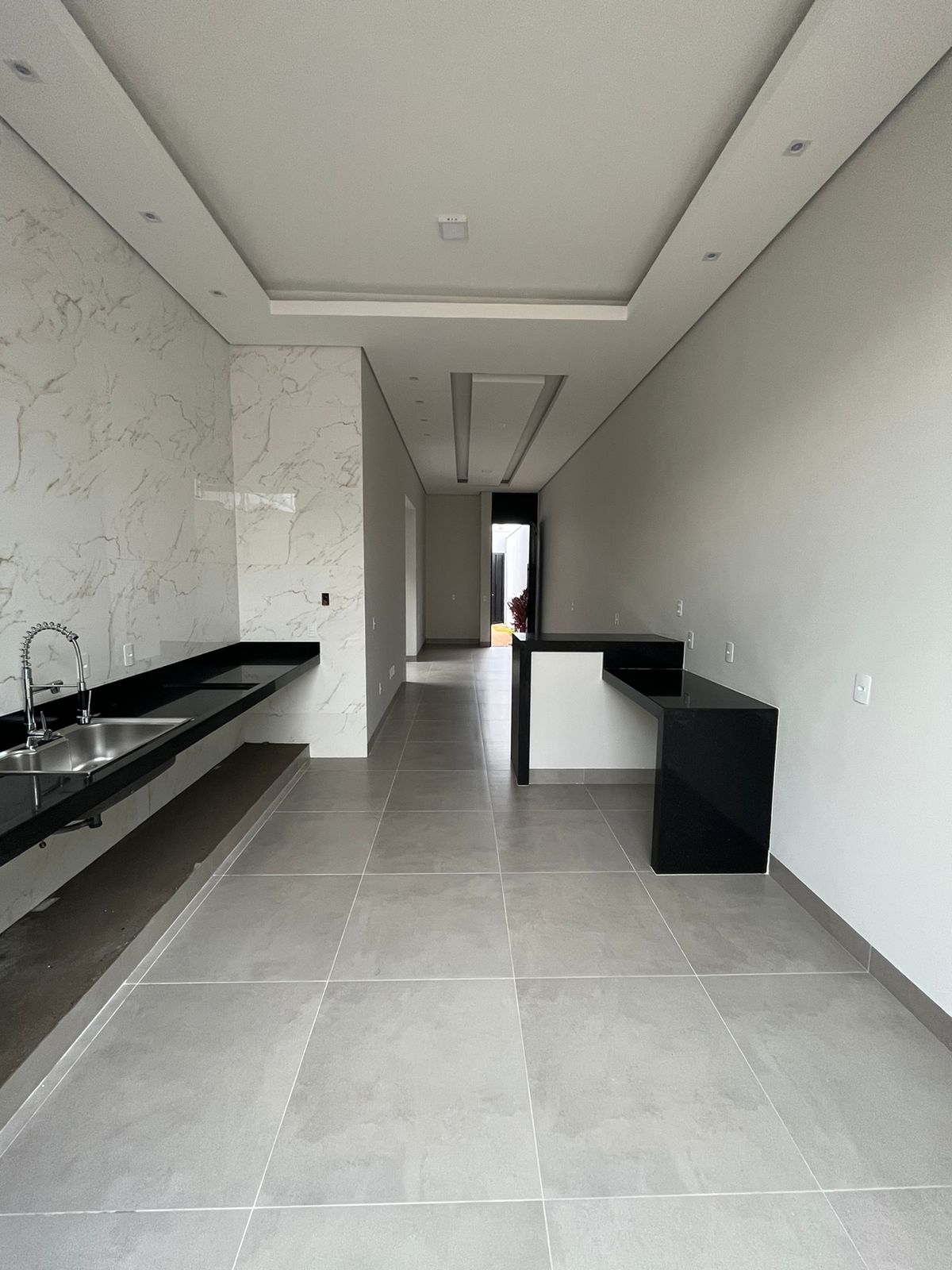Terreno de 150 metros com 85 metros de área construída- Casa toda em porcelanato Classe A- Banheiro social- 3 quartos sendo 1 suíte com closet- Preparação para ar condicionado em todos os quartos- Pé direito duplo com sanca dupla na sala e na cozinha- Estrutura para instalação de aquecedor solar- Preparação de água quente na cozinha e nos banheiros- Cozinha com churrasqueira integrada e revestida com porcelanato- Cuba grande na pia da cozinha com torneira gourmet- Península na cozinha com balcão e bancada- Granitos nas cores preto São Gabriel e Quartzo - Lavanderia com cuba inox e bancada de apoio- Ducha na parte externa da casa- Garagem para dois carros- Esquadrias pretas em toda a casa- Acabamento alto padrão