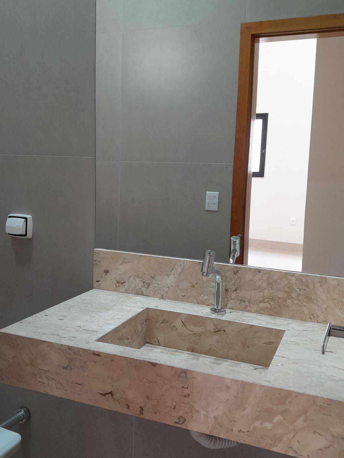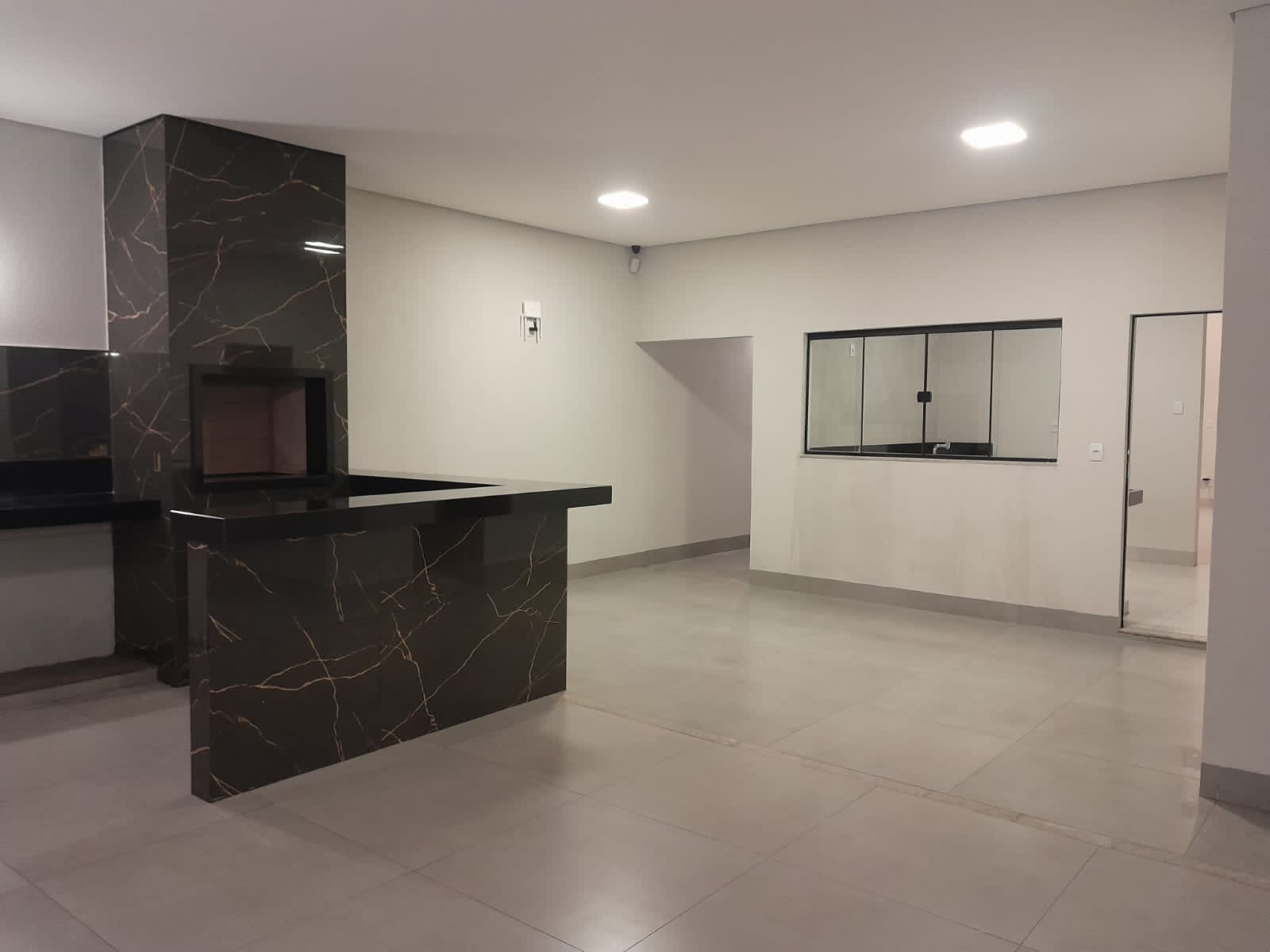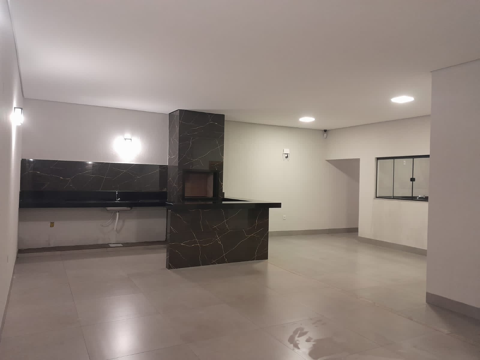 3/4 sendo 1 suite c/ closet, banheiro social interno, sala com pé direito duplo e 2 ambientes, cozinha, lavabo na varanda externa, garagem coberta para 3 carros, espaço no fundo. Pré instalação de água quente.Varanda gourmet à parte.