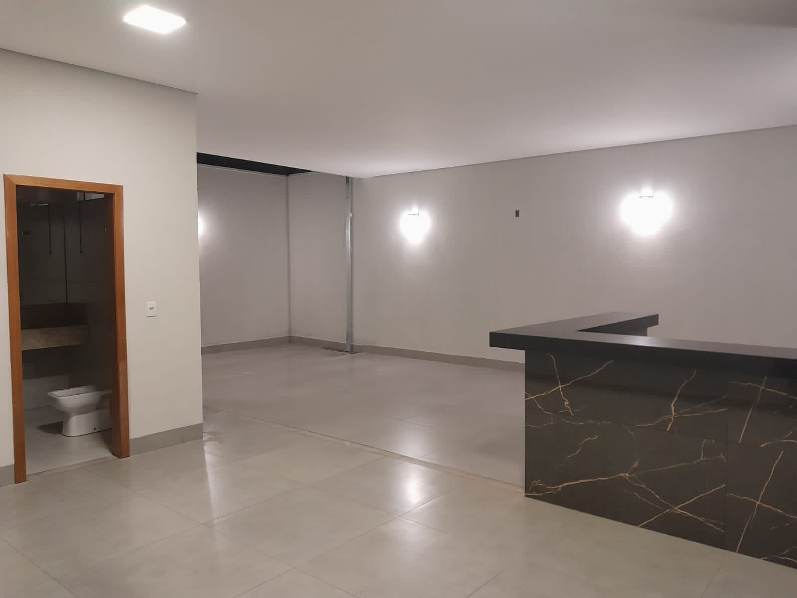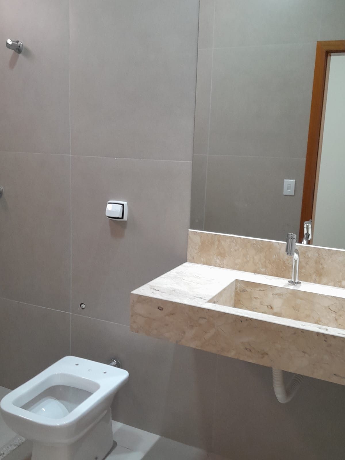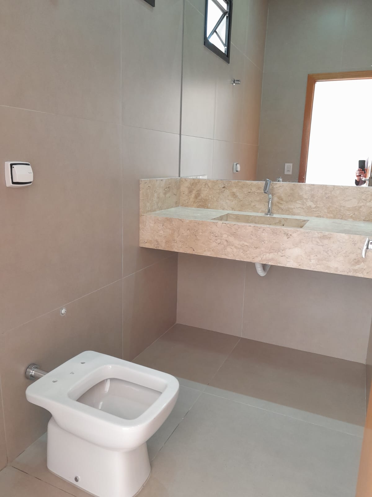 3/4 sendo 1 suite c/ closet, banheiro social interno, sala com pé direito duplo e 2 ambientes, cozinha, lavabo na varanda externa, garagem coberta para 3 carros, espaço no fundo. Pré instalação de água quente.Varanda gourmet à parte.