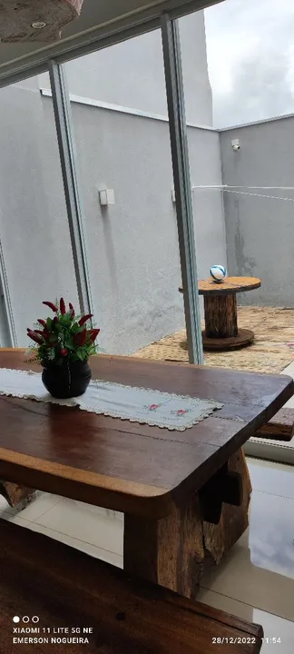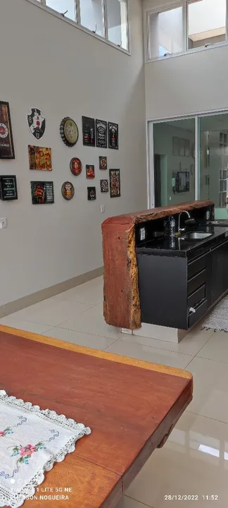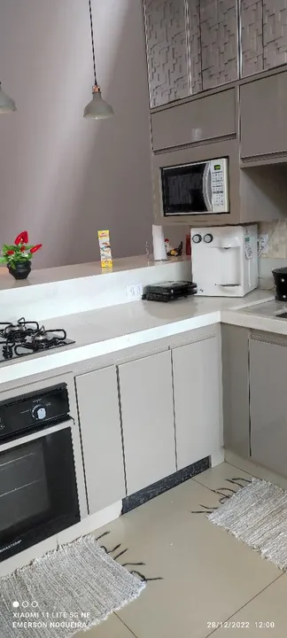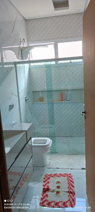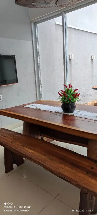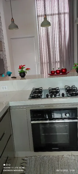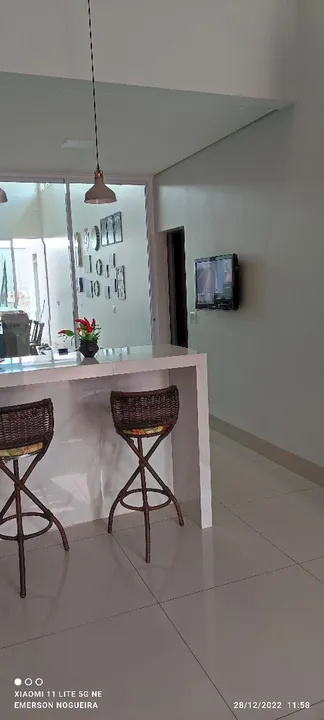 Encantadora casa com 3/4, 1 suíte, 1 banheiro social, lavabo, corredor de acesso para os quartos, sala ampla com pé direito duplo, parede 3D carinha, mobilhada com balcão e pia em porcelanato, balcão para refeições com 4 banquetes, área gourmet com pé direito duplo, fogão a lenha, churrasqueira, balcão em madeira maciça, sistema de som para alto falante embutido, bancada com pia em granito, churrasqueira toda revestida em madeira maciça, área externa fundo parte em porcelanato, casa do gás, lixeira, lavanderia ampla, lavabo, corredor lateral de acesso, todas torneiras com encanamento para água quente, duas caixas de água de 2000 litros uma para os banheiros outra para cozinha, as duas com válvula de pressão pré estalado da foto Voltaique, parte elétrica toda separado por setor da casa todos quartos com ar-condicionado, todas portas e janelas externas em alumínio, pintura eletrostática branca, janelas todas com persianas acoplada elétrica com controle remoto, porta da sala em ACM de 170x270, garagem para 4 carros, jardim, portão de 5.50 metros entrando dois carros ao mesmo tempo, casa toda em porcelanato, banheiros com pias esculpidas em porcelanato, portão eletrônico e circuito de câmeras. Metragem: 165 m²