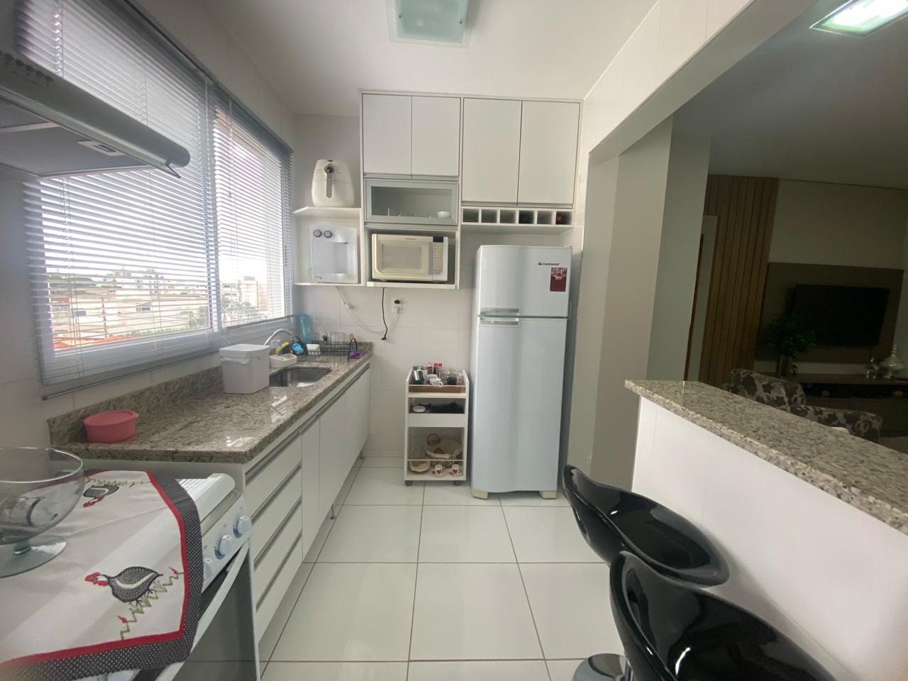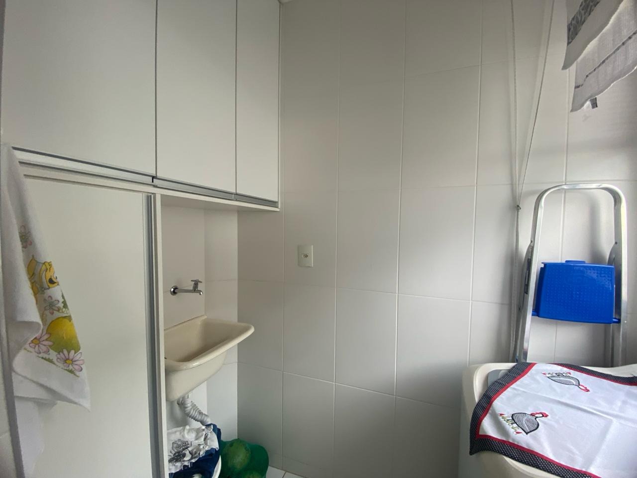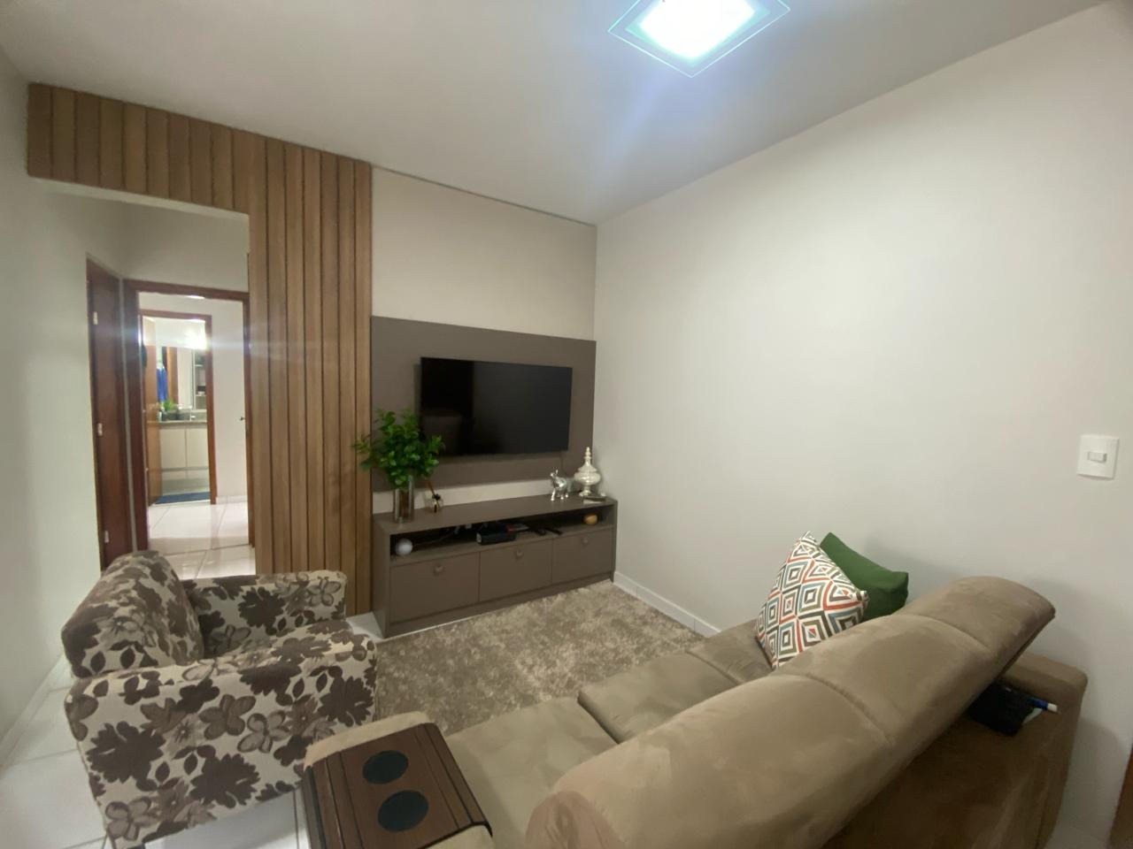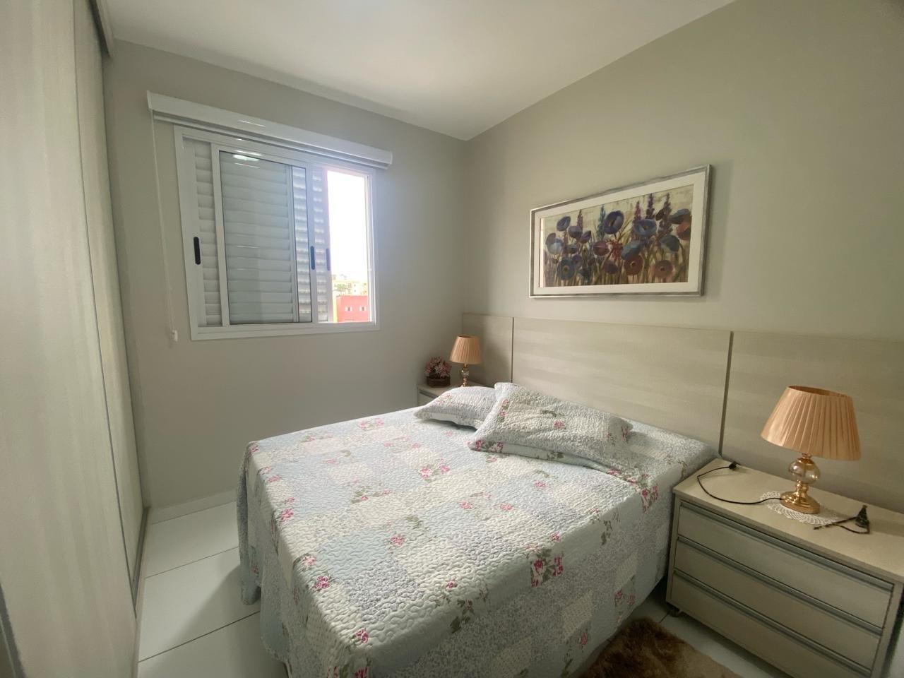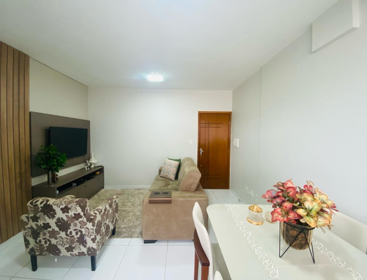 Apartamento com 2 quartos sendo 1 suíte com ar condicionado, Banheiro social amplo, Sala e cozinha americana, Lavanderia, Planejados em todos os ambientes.