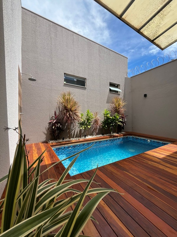 - 3/4 com 1 suíte - Energia fotovoltáica - Energia Solar nas torneiras e chuveiros. - Sistema de segurança - Piscina aquecida - Dispensa - Lavanderia planejada - Terreno: 250m² - área construída: 170 m² - Armários planejados na casa toda/quartos. - Preparação para Ar condicionado em todos os quartos e sala. - Pé direito duplo com cozinha integrada; - Piscina com Deck de madeira primeira linha