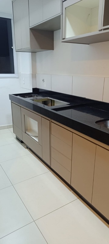 - Este apartamento de 2 quartos, sendo 1 suíte, no Jardim Holanda, é a oportunidade que você estava esperando! Com sala integrada à sala de jantar e sacada, ele oferece amplos espaços ideais para o seu dia a dia. A cozinha planejada conta com bancada de pedra preta São Gabriel, já com corte para Cooktop de 5 bocas, além de armários planejados e lavanderia completa. - Os dois banheiros são modernos, com box de vidro e armários planejados, e o apartamento todo possui porcelanato fosco de alta qualidade. - Com 1 vaga de garagem que acomoda moto e carro, este imóvel é ideal para quem busca praticidade. - Além disso, o condomínio oferece elevador, parquinho infantil, academia ao ar livre, mercadinho 24h e portaria 24h. E o melhor: água e gás inclusos no valor do condomínio!