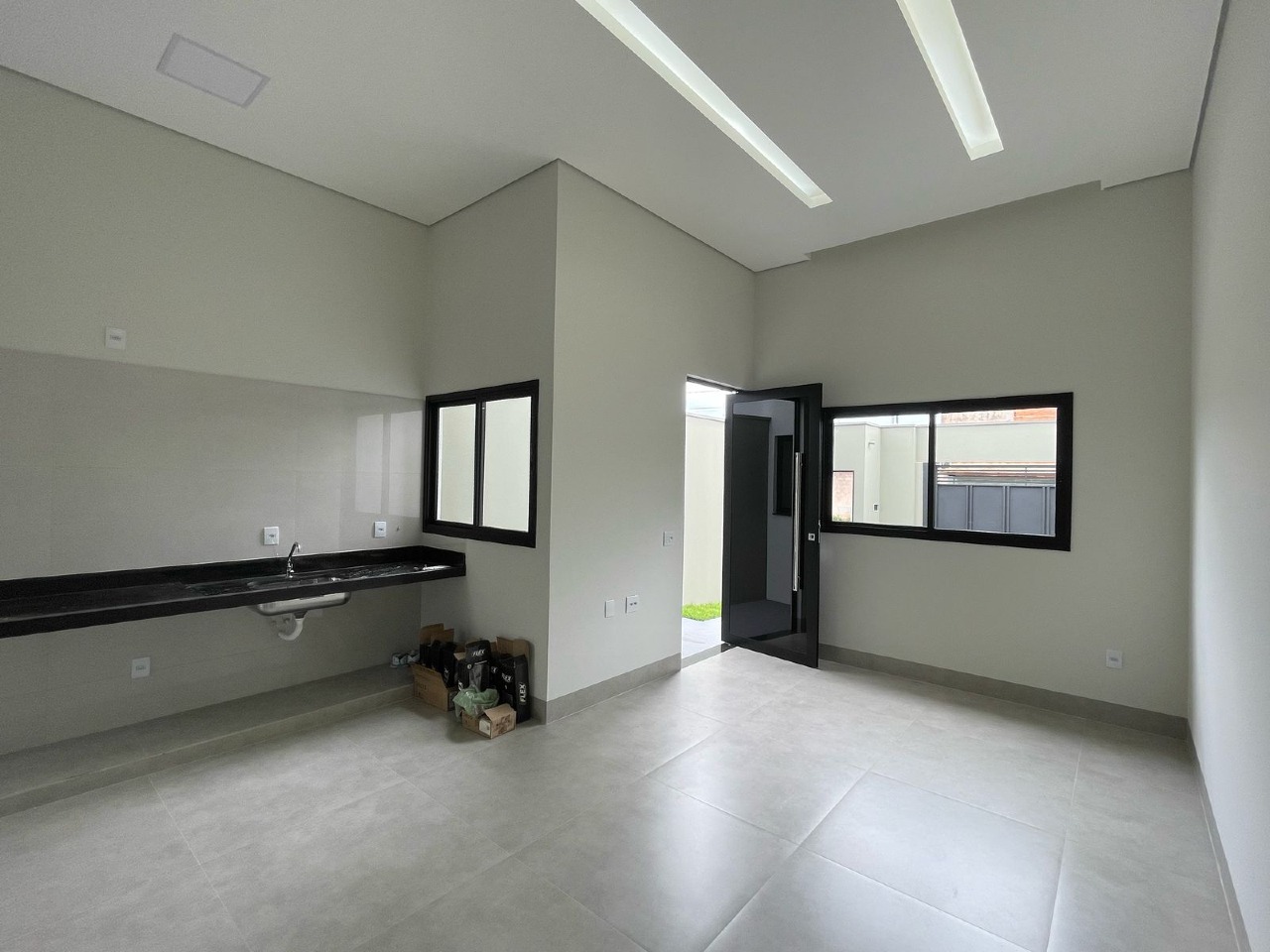 - Casa á venda no bairro Quinta Alto Umuarama - Com 3 quartos ( sendo 1 suíte ) - 1 banheiro social, sala ampla conjugada com a cozinha, com pé direito duplo - Àrea de serviço separa e coberta, com tanque em granito preto semiabsoluto e cuba inox - Garagem para 2 carros ( descoberta ) - Passeio com pedra macaquinho, portão basculante e portão de pedestre - Piso com porcelanato accetinado retificado 90x90 , com esquadrias de alúminio preto fosco, linha suprema - Ponto de ar-condicionado nos 3 quartos e na sala