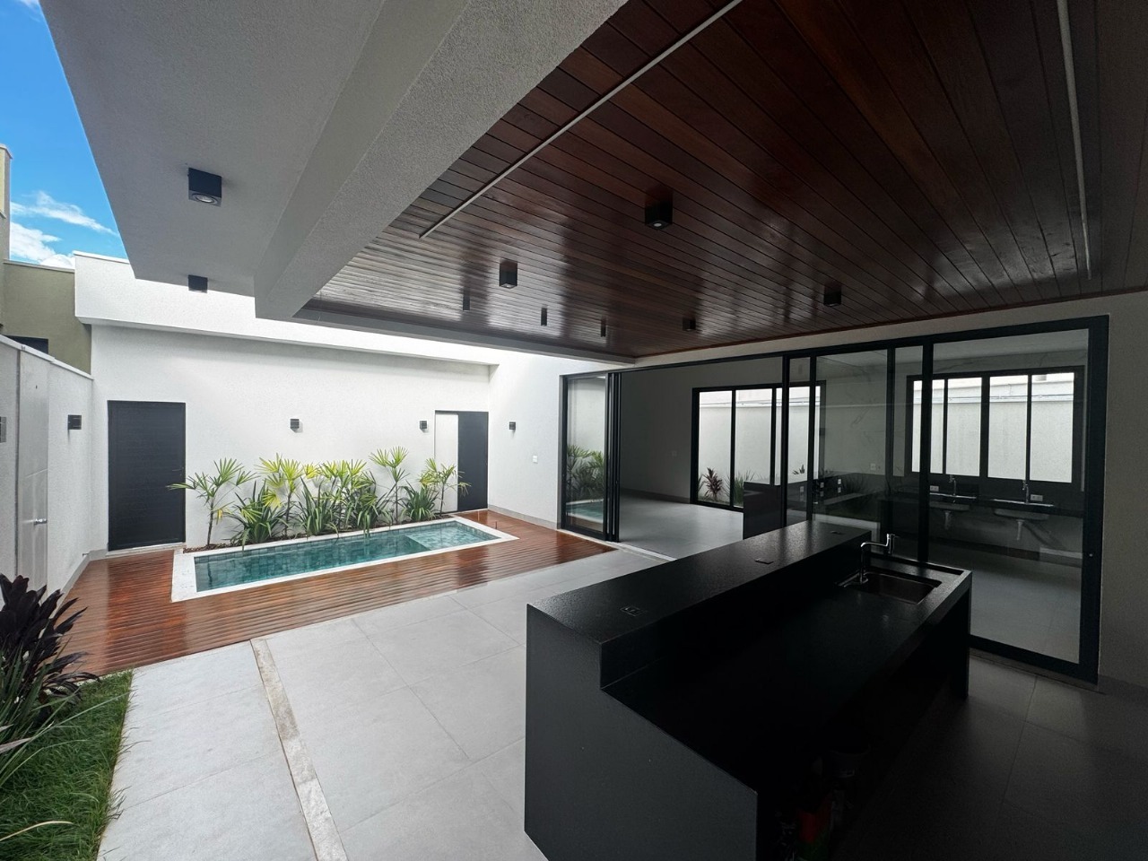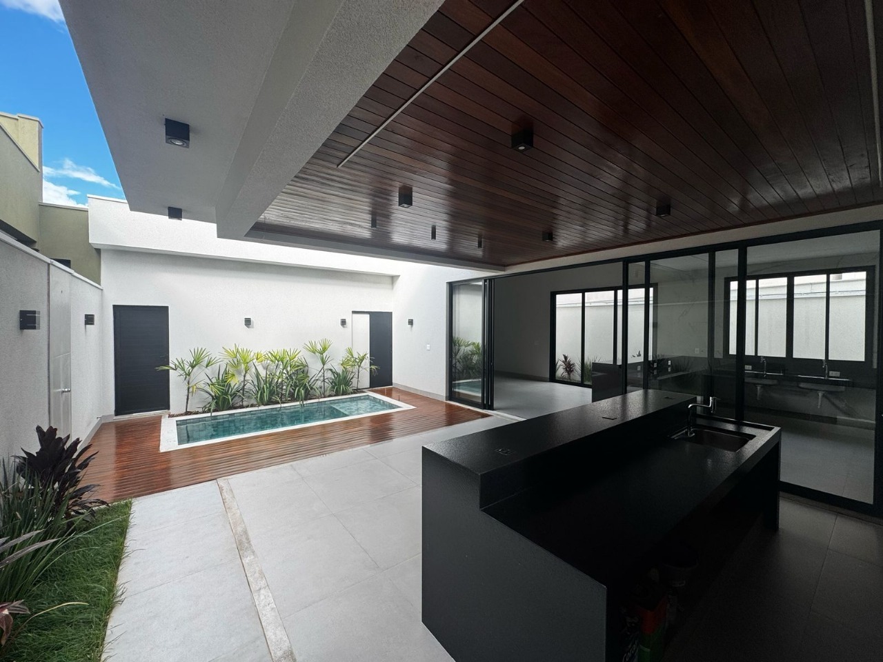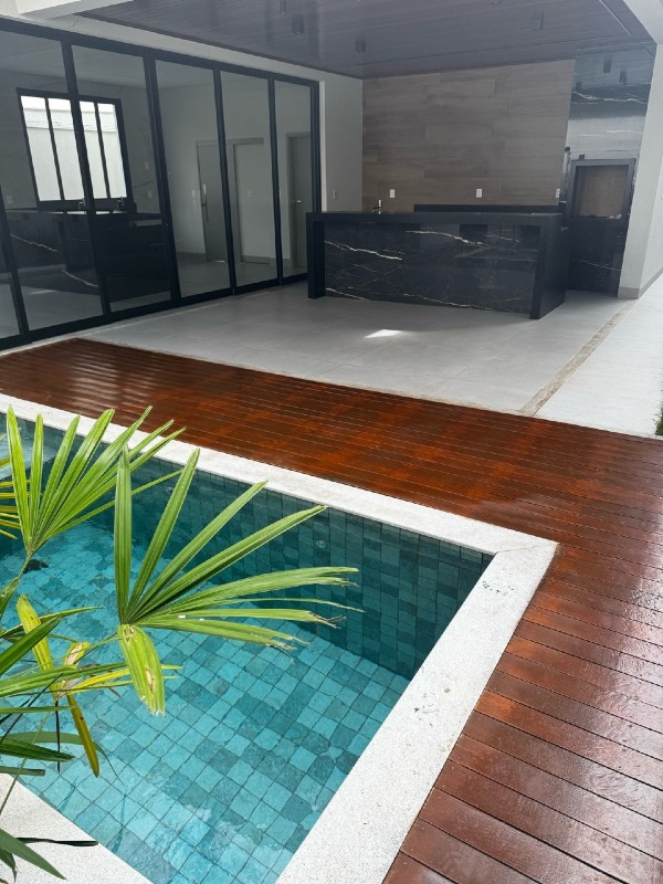 - Casa á venda!! - Conta com 3 suítes (todas com closet) lavabo interno, escritório, sala de estar e jantar com pé direito duplo, cozinha e área de serviço. - Area gourmet completa com churrasqueira, ilha e forro de madeira cumaru e preparada para instalação de sistema de som. - Piscina com hidromassagem e prainha, deck de madeira cumaru no piso ao lado da piscina, lavabo externo, depósito externo, garagem para 2 carros. - Fachada moderna com revestimento em pedra e pele de vidro, pintura externa 100% em arenato. - Acabamentos: Piso porcelanato 1m x 1m Portinari, revestimentos Eliane nos banheiros, nichos nos banheiros, louças e metais Deca, pias de inox marca tramontina, água quente em todos os ambientes, piscina com aquecimento solar, forro em gesso, iluminação completa em led, cabos de rede passados, pré instalação de ar condicionados, esquadrias em aluminio e portas em ACM. - Residência de propriedade e executada por engenheiros com todos os projetos (arquitetonico, estrutural, elétrico e hidrossanitário) e suas respectivas responsabilidades.